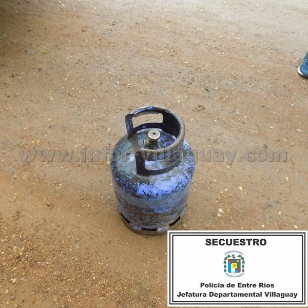 Ante tal situación y con los datos aportados por la mujer, se  informa a los móviles del Comando Radioeléctrico quienes en inmediaciones de calle Goyena y Landín visualizan a dos masculinos llevando consigo una garrafa coincidente, estos hombres al notar la presencia policial se dan a la fuga abandonando dicha garrafa, logrando su cometido uno de ellos, no así el restante quien es aprehendido en el lugar.