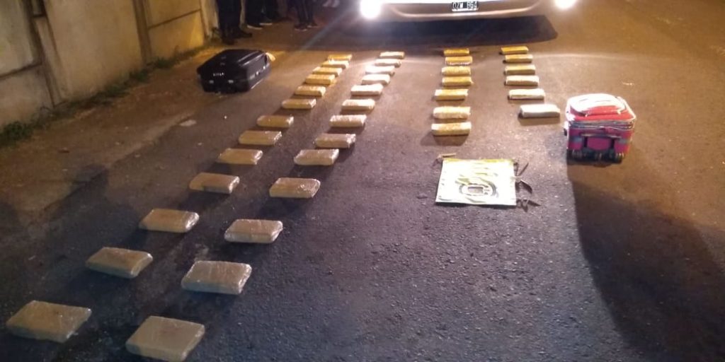 Fueron 38 panes de marihuana un peso de 44 kg 115 gramos y 22 pasajeros demorados que se van identificaron para intentar establecer la propiedad de las valijas .