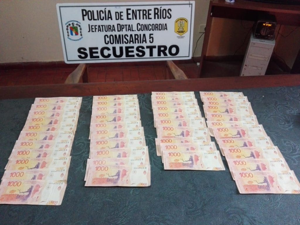 Personal policial, con conocimiento del fiscal en turno procedió al formal secuestro del dinero restante, un total de ($42.000) cuarenta y dos mil pesos argentinos. Procediéndose a irradiar en toda la zona,