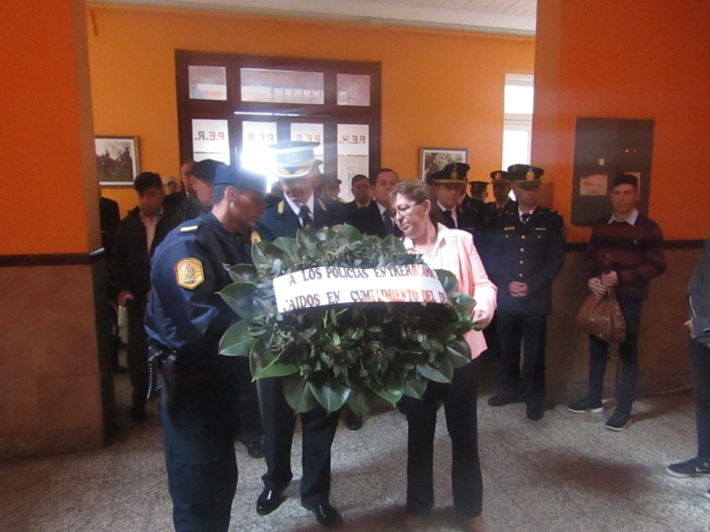 En la Jefatura Departamental Concordia, se homenajeó a los 16 Efectivos de la Fuerza, caídos en el departamento en ejercicio del deber. Presidió el acto el Sub Jefe Departamental Crio. Inspector Juan Antonio Beguerie, y estuvieron presentes Autoridades Policiales, integrantes del Círculo de Retirados de la Policía y Familiares de Policías recordados.