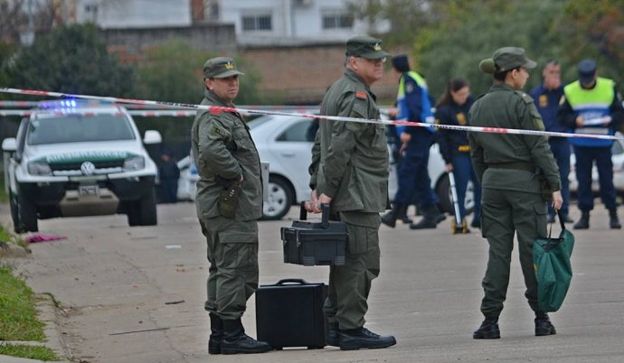 En la mañana de este día domingo cuando transcurría la hora 07:50 aproximadamente, una Funcionaria Policial se dirigía a su lugar de trabajo y circulando en su moto por calles Cjal. Veiga pasando Tte. Ibáñez es sorprendida por una gresca generalizada en la zona entre muchas personas, todos varones, quedando en el medio de la pelea y las pedradas. Por ello, habiendo detenido su marcha, sin hacer caso omiso a la situación, trató de apaciguar los ánimos, siendo que estas personas comenzaron a agredirla con empujones, golpes de puño y puntapiés y hasta con un palo, por ello, estando rodeada, habiendo dejado su moto estacionada, comenzaron a dañársela con piedras de gran tamaño para luego incendiarla. Ante tal situación y al verse sobrepasada en número por estos hombres, extrae su arma reglamentaria, efectuando un disparo intimidatorio al suelo. Allí los agresores dejaron de pegarle, pudiendo llamar por teléfono y pidiendo refuerzos mientras se resguardaba en la casa de un vecino para no seguir siendo golpeada. Al llegar el apoyo Policial un Móvil trasladó a la Funcionaria para su resguardo hasta la Comisaría Cuarta. En razón de su disparo hacia el suelo, dicho rebote del proyectil impacta contra la humanidad de un hombre de apellido VARELA de 31 años domiciliado en la zona, acertándole el disparo en zona del esternón, quien luego fue trasladado por la Ambulancia ingresando al Hospital Masvernat sin vida. Pudo establecerse luego que lo que habría motivado el desorden y la pelea entre los dos grupos de personas, siendo estos vecinos, (a dos cuadras de diferencia entre sus domicilios) fue que momentos antes un grupo de personas y entre ellos se encontraba un joven de apellido SILVA de 19 años, domiciliado también en la inmediación (LUGAR DONDE CUMPLE PRISIÓN DOMICILIARIA), habría intentado sustraerle elementos a una persona que transitaba por el lugar, ante esta situación vecinos que tomaron conocimiento de ello y molestos por el accionar de SILVA y compañía, fueron a recriminarle la actitud, comenzando a arrojarse piedras y palos entre ambos bandos, unos en contra de este SILVA y otros en su favor. Estando el personal Policial aun trabajando en la escena, allegados a VARELA y en disconformidad con la actitud de SILVA que habría sido el motivo de los hechos que terminaron con la vida de VARELA, se apersonaron en su domicilio con la finalidad de hacer justicia por mano propia, lo que motivó a SILVA que saliera por los fondos y se diera a la fuga, violando la medida restrictiva de PRISIÓN DOMICILIARIA, siendo interceptado y aprehendido por Personal Policial en inmediaciones de ex cancha de Independiente, y luego con conocimiento de la autoridad judicial fue trasladado y alojado en la Alcaldía. Es de mencionar que en retiradas oportunidades anteriores a lo acontecido, durante la noche del Sábado y madrugada del Domingo, la Policía concurrió al lugar por llamados telefónicos en virtud de reiterados enfrentamientos entre estas bandas, los cuales eran dispersados. En forma conjunta con la División Criminalística de la Jefatura de Policía, trabajó a pedido del Fiscal Dr. Arias el Personal Gendarmería Nacional.