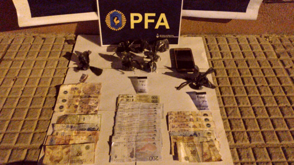 En el lugar se secuestró gran cantidad de envoltorios de marihuana prensada y cogollos de marihuana, fraccionados en dosis para consumo, dinero en efectivo, tres teléfonos celulares táctiles, y el rodado de alquiler.