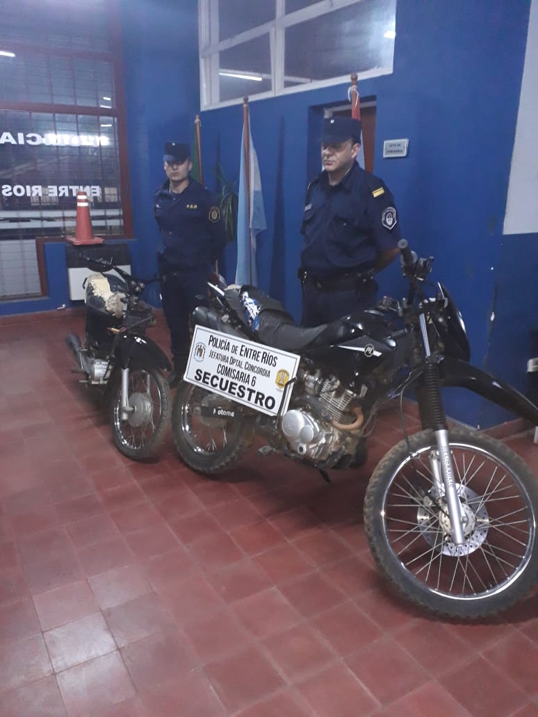 Personal de comisaría sexta en la víspera a raíz de averiguaciones practicadas, siendo aprox., las 21:30 hs., se presentan en una finca ubicada en inmediaciones de calle Nogoyá y Mario Gatto, donde con autorización de la propietaria ingresaron a verificar dos motocicletas de dudosa procedencia estacionadas al costado de la casilla.- Tratándose de una Moto marca HONDA BIZ, color negra, 100 cc., sin las cachas laterales, y otra marca MOTOMEL CX 150 cc., color negro, al chequearlas se consultó con la base de datos del Cdo. Rco., informando el operador que ambas presentan pedido de secuestro la primera de fecha 28/09/2019, a solicitud de comisaria cuarta y la segunda de fecha 12/09/2019, a solicitud de comisaria séptima.- Se realizaron las diligencias de rigor, con el secuestro de ambos rodados, con conocimiento Fiscal Dra. Montangie D.- Tomo intervención al verificador policial.-