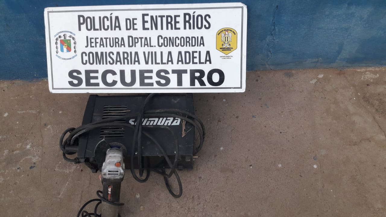En la tarde de este martes, la Policía de Comisaría de Villa Adela a raíz de un llamado telefónico se hizo presente en calle México al 3700 aprox., en la cercanía de ese lugar se encuentra una obra en construcción en la que un masculino desconocido había ingresado sustrayendo una soldadora y una amoladora. Rápidamente los Efectivos con datos aportados por vecinos logran encontrar en fuga al malviviente con los elementos mencionados. Toma conocimiento la Fiscalía en turno disponiendo el Secuestro de las herramientas y su posterior entrega como también la APREHENSIÓN del hombre de 42 años y su alojamiento en la Alcaidía Policial.-