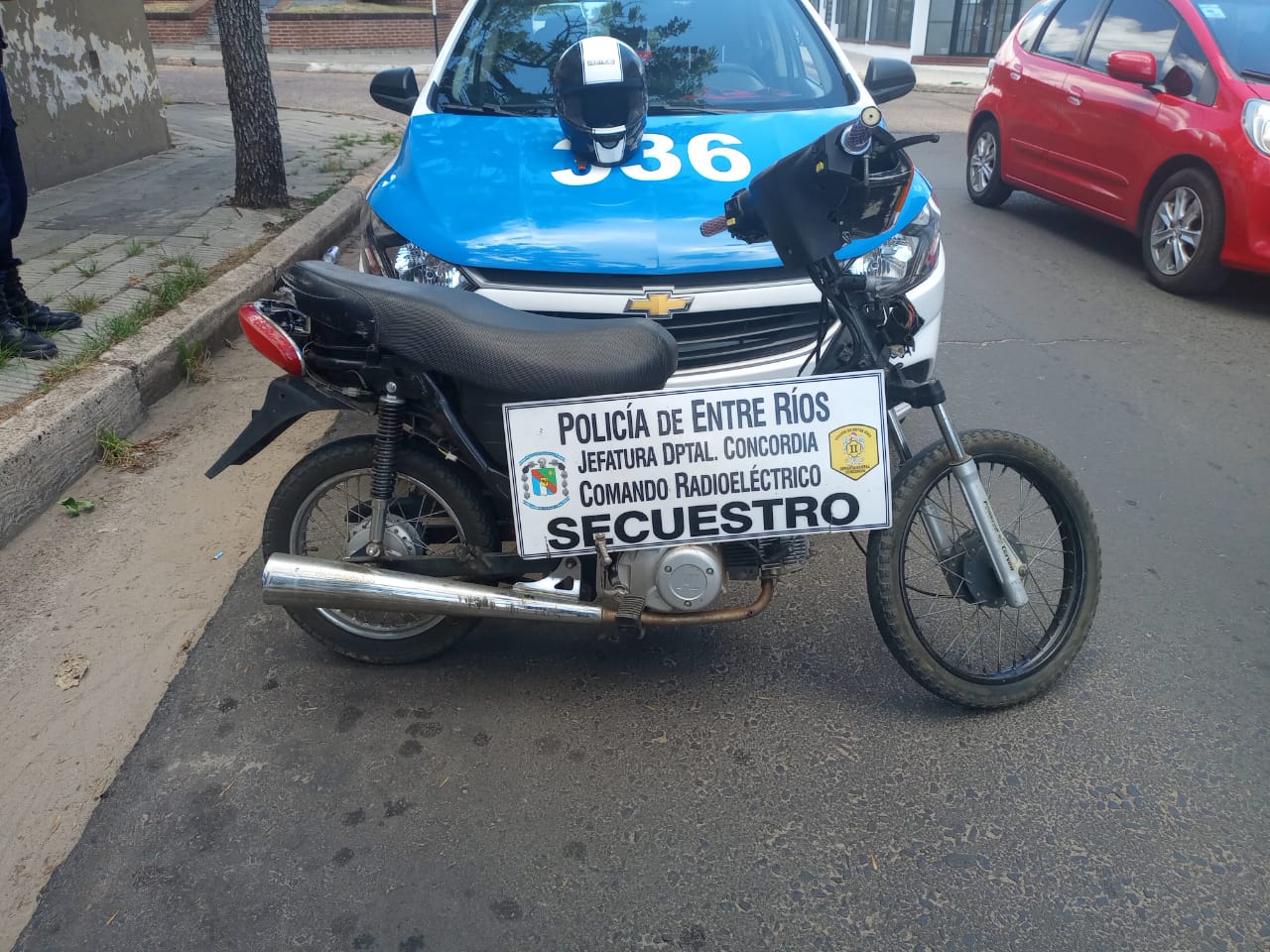 En horas del mediodía de este sábado, la Policía de la División Investigaciones observaron a un masculino en una moto y en actitud sospechosa transitando en calle P.A. De Sarmiento casi al 1700, seguidamente se  procede a identificar al sujeto de 20 años y luego, al chequear la moto marca BAJAJ-Rouser de color negro que el joven conducía arrojó como resultado que tenía un PEDIDO DE SECUESTRO por Robo en la Localidad de Isidro Casanova, partido de la Matanza, Bs.As., por lo que se procede al formal SECUESTRO del mismo. Toma conocimiento la Fiscalía en turno.-