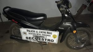 En la noche de la víspera a la hora 23:00, Personal Policial de Comisaria Séptima cuando se encontraba realizando recorridas de rutina en prevención del delito, procede a tratar de identificar a una persona que se encontraba en una motocicleta en calle Lieberman y 55, cuando al ver que los Funcionarios bajan del móvil éste arroja la motocicleta al suelo dejándola abandonada y emprende la fuga corriendo, una vez chequeado el rodado se pudo constatar que se trataba de una moto marca ZANELLA de 110cc; de color negra la que presentaba un pedido de secuestro desde el año pasado. Se dió intervención al Verificador Policial y se procedió al formal secuestro del mismo.