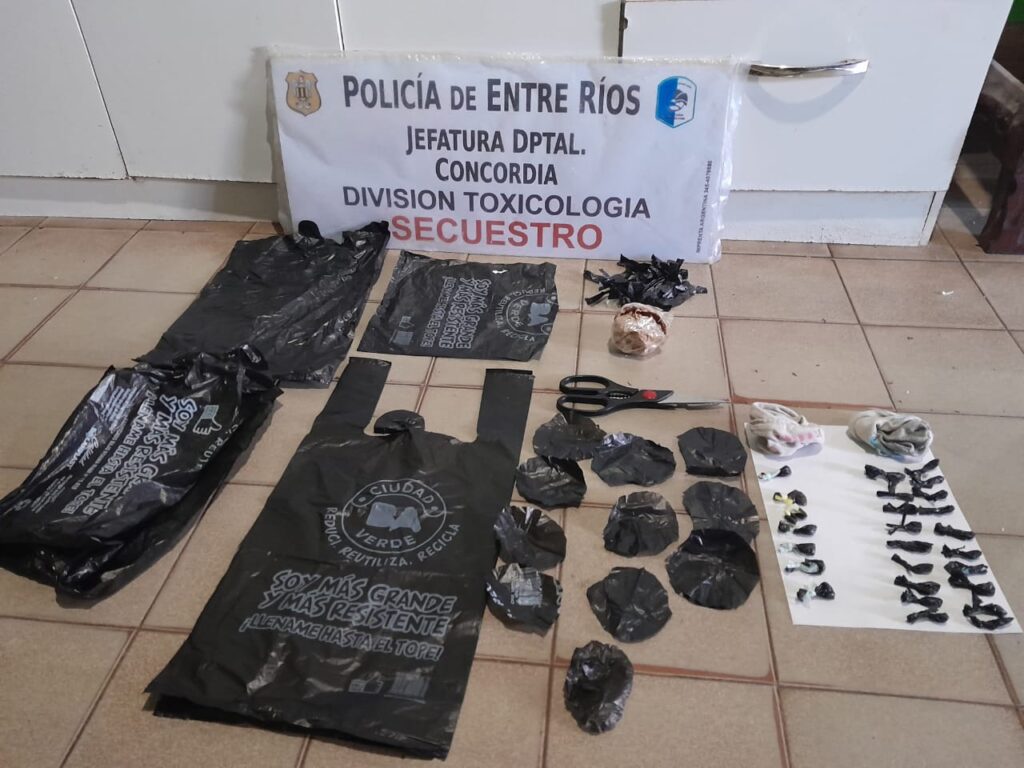 En la víspera personal de la División Toxicología y Grupo Especial de Concordia y de la División Toxicología y grupo especial de la Jefatura Departamental San Salvador, diligenciaron dos mandamientos emanados por el juzgado de garantías, en relación con una causa en trámite ante la fiscalía del Dr. Fabio Zabaleta por la Sup./infracción a la Ley 10.566.- Allanaron dos viviendas en jurisdicción de comisaria octava, arrojando ambos procedimientos resultados positivos, se actuó con el secuestro de (26) envoltorios de bolsa de nylon negro conteniendo “Cocaína”, (03) tijeras, (03) teléfonos celulares, recortes de bolas de nylon y bolsas de nylon de color negro sin uso, medicamentos de distintos tipos en cajas y sueltos, (07) envoltorios de Nylon con marihuana, (15) semillas de Cannabis Sativa, (01) envoltorio de Nylon con una piedra de cocaína y dinero en efectivo, además se procedió a la detención de un masculino de 42 años y una femenina de 65 años.-