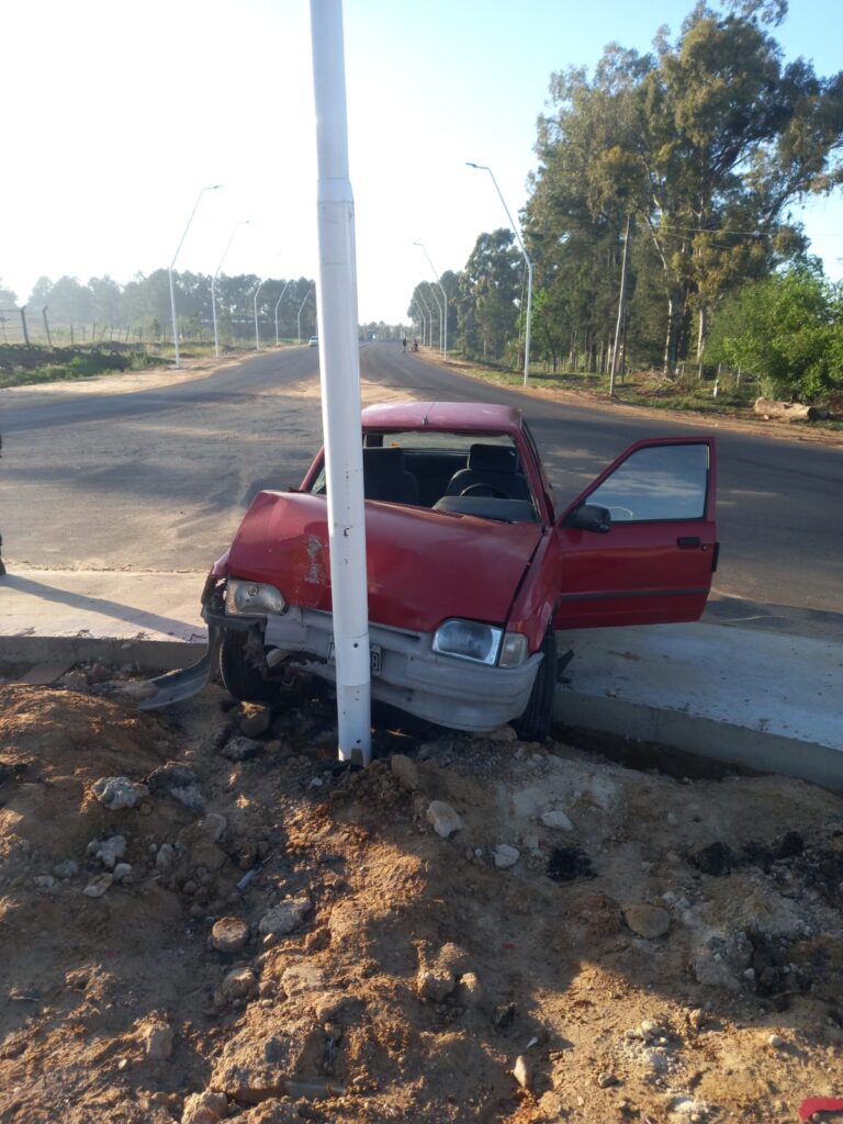 En el dia de ayer, personal de comisaría Octava, tomó intervención por accidente en Avda. Presidente Illia y rotonda de ingreso a campo El Abasto, donde un automóvil Ford Escort impactó contra un poste de luz. El conductor, de 26 años, fue trasladado al hospital Masvernat, donde se informó que presenta politraumatismos con TEC leve, escoriaciones, herida cortante en labio con sutura y traumatismo en mano derecha.