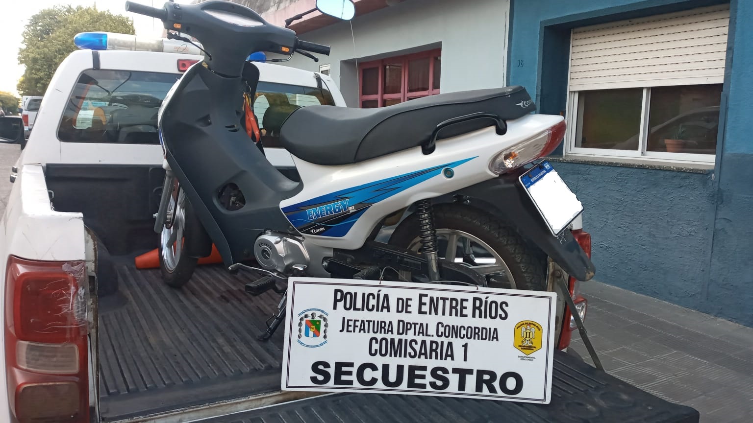 En la mañana de este domingo en calle Urquiza y 9 De Julio, Efectivos Policiales de la Sección Motorizada procedieron a la Aprehensión de un hombre de 29 años por motivos de que el mismo había sustraído a una mujer su motocicleta marca CORVEN-Energy 110cc rompiendo el traba manubrio. A su vez, previamente este mismo masculino realizó una Tentativa de Robo a pocas cuadras de ese lugar en perjuicio de otra mujer a quien la había intimidado bajo amenazas para robarle sus pertenencias, por lo que ante la situación vivida la mujer pudo salir corriendo del lugar desistiendo así el malviviente de su accionar. Se secuestra y devuelve el rodado a la víctima, también se tomaron Denuncias respectivas. Quedando el malviviente alojado en la Alcaidía Policial.-
