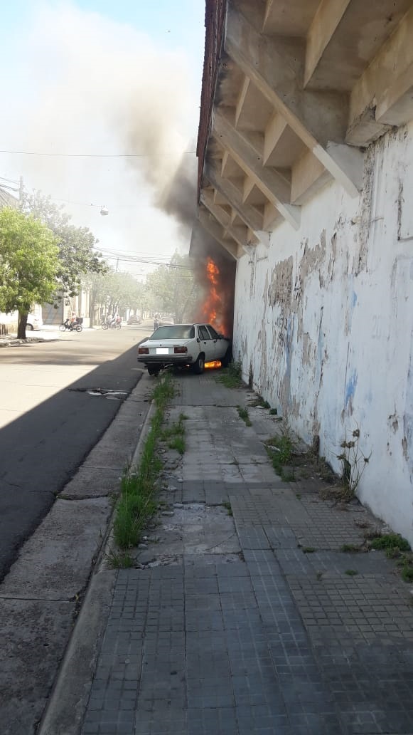 En la jornada de este jueves, Bomberos Zapadores se constituyeron en calle San Juan casi R.S. Peña, allí, un vehículo marca RENAULT-18 de color blanco se encontraba en llamas sobre la vereda por lo que rápidamente el Personal apagó las llamas, al llegar la propietaria del rodado manifestó que lo había dejado estacionado a metros del lugar y que aparentemente se salió de cambio. En cuanto al siniestro, el vehículo quedó quemado por completo su parte delantera y por suerte no hubo lesionados.-