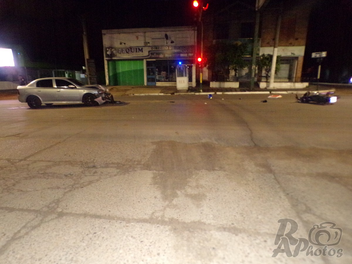 Masvernat. El automóvil circulaba por Av. San Lorenzo de Este a Oeste, cuando impacta con su frente a la moto que ingresaba a la Avenida desde calle Diamante en sentido de circulación Norte Sur.-