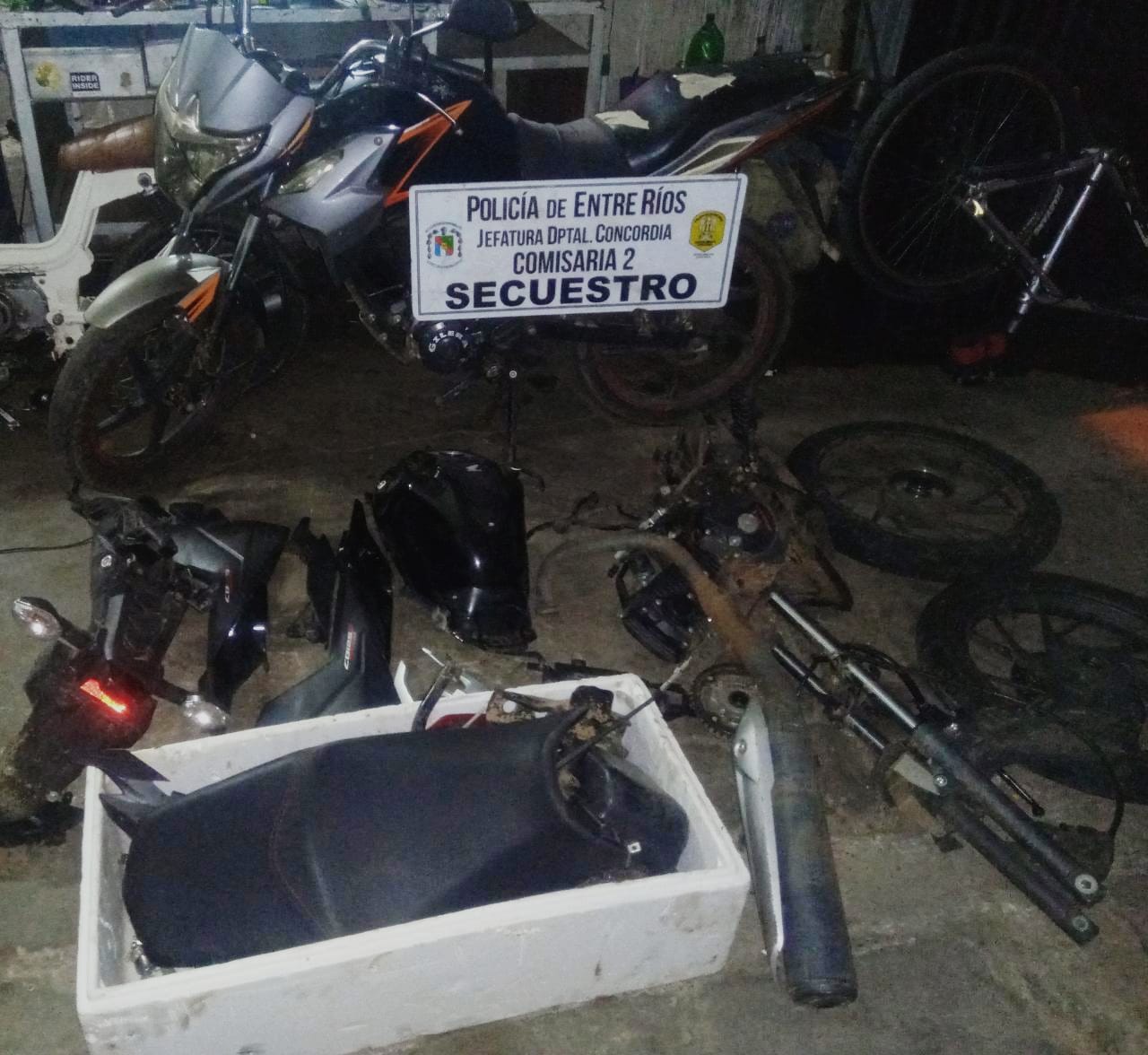 En la víspera en horas de la tarde personal de comisaría segunda cumplimento mandamiento emanado del juzgado de garantías, en el cual de ordena el allanamiento y Registro Domiciliario de una vivienda sita en jurisdicción de comisaría cuarta, en búsqueda de un motovehículo marca HONDA modelo CB 125 CC, como así también cualquier tipo de armas de fuego y/o cartuchería.- Se notificó a un ciudadano de 34 años, arrojando el procedimiento resultado positivo, se procedió al formal secuestro del motovehículo interesado completamente desarmado y además (01) motocicleta de marca Gilera modelo Vc 150 cc., color gris, sin dominio colocado, la cual posee pedido de secuestro por denuncia radicada en fecha 08/1/21. Intervino la División Criminalística.-