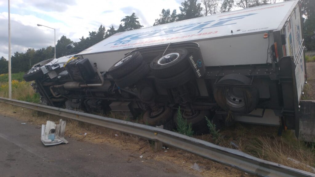 En la víspera, en horas de la tarde, un camión marca MERCEDES BENZ que transitaba por la Autovía G. Artigas, por el Km-254 (sentido “N/S”), conducido por un masculino de 28 años, por razones que se tratan de establecer, el conductor pierde el control del rodado y vuelca sobre el lateral derecho de la cinta asfáltica. Afortunadamente no hubo lesionados. Trabajó en el lugar Personal Policial del Destacamento de Distrito Yuquerí.-