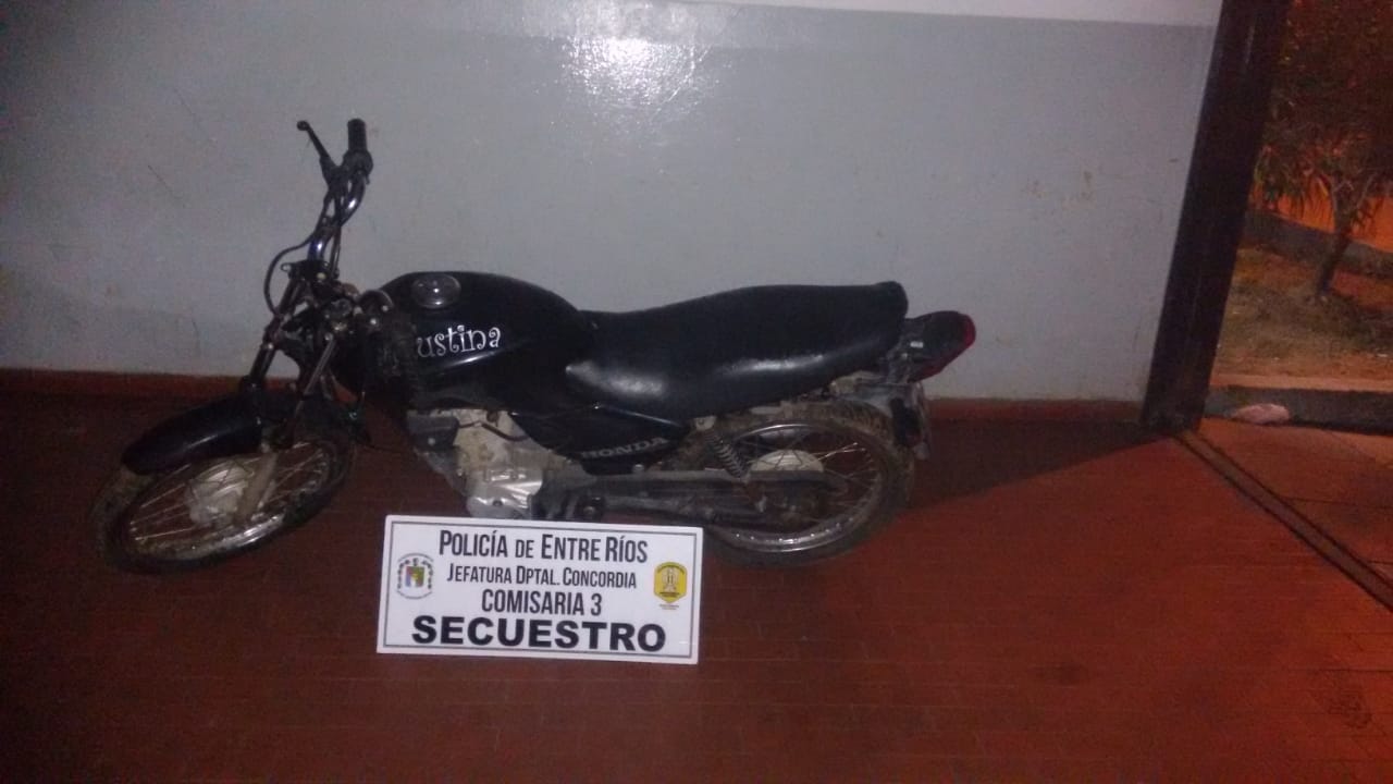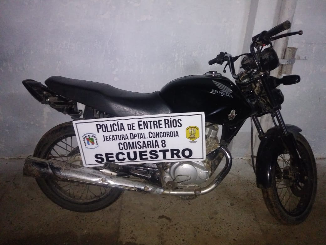 Un joven de 20 años que había dejado su moto Marca Honda CG. Titán 150cc.en el frente de la casa de un amigo, quien luego se percata de la faltante de la misma, por lo que se dirigió a realizar la denuncia previo aviso a Personal Policial de Comisaría 8va. Quienes rápidamente realizan una recorridas por la zona y ya entre manos con las sospechas de quien pudo haberla robado un joven alias (Caballito), valla sorpresa que la moto estaba oculta en el interior de la Escuela Gral. Juana Azurduy, por lo que el Fiscal interviniente dispone los actuados y la entrega del rodado al joven afectado.