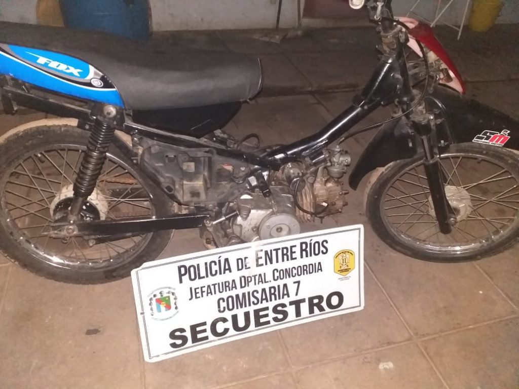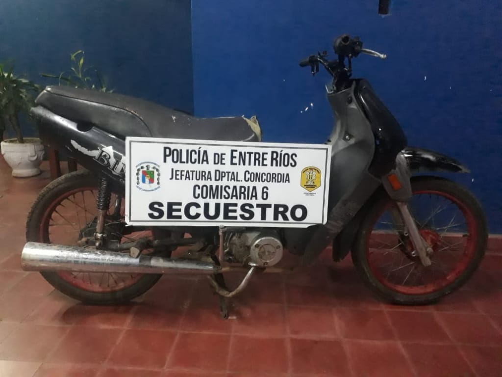 El Jueves siendo aproximadamente las 21,30 horas personal de comisaría Sexta, realizando patrulla por la jurisdicción, en calles Nogoyá y Mario Gatto, interceptó a una persona de sexo femenino, que circulaba a bordo de una motocicleta marca GILERA SMASH de 110 cc., sin dominio colocado.   Al chequear el rodado se informó desde la sala del Comando Radioeléctrico que registraba pedido de secuestro por denuncia radicada en fecha 10/05/2020. La fiscal  de turno ordenó el secuestro del rodado y la correcta identificación de la conductora, de 28 años de edad. Intervino el verificador de turno.
