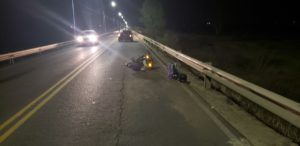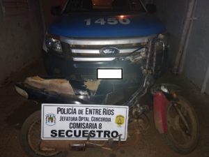 Según dichos de los involucrados, colisionaron desde atrás a un carro, el cual no se localizó. La motocicleta circulaba desde Concordia hacia V. Adela.-