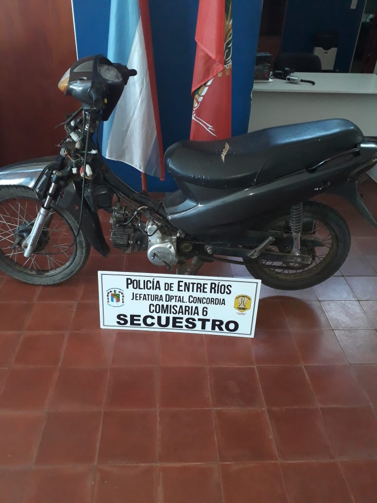 Personal de comisaria Séptima, anoche, procedió al secuestro de una moto Honda de 125 cc, en calles Enriqueta Tavella y calle Publica. Personal de patrulla jurisdiccional, visualizó una persona de sexo masculino a bordo de la motocicleta, quien al ver el móvil policial dejó abandonado el rodado y se dio fuga a pie. Se constató que la moto modelo CG Titan 125 c.c. sin dominio colocado, registraba un pedido de secuestro de fecha 16 de Febrero del 2019. Por su parte, personal de comisaria Sexta, en Avda. Tavella y De Los Viñedos, secuestró una motocicleta marca GILERA SMASH de 110 cc., de color negra, con pedido de secuestro por denuncia radicada en