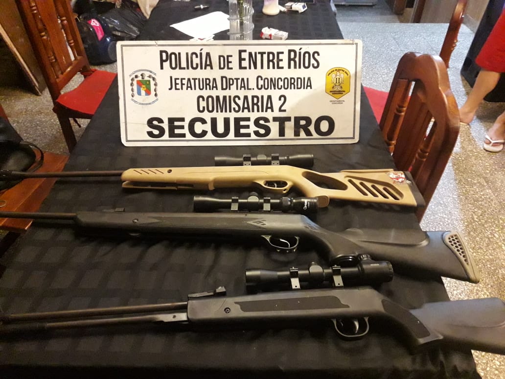En la fecha en horas de la mañana, personal de comisaria segunda, diligencio Mandamientos emanados del Juzgado de Garantías, en viviendas ubicadas dentro del radio de esa jurisdicción, como resultado de los procedimientos se procedió al secuestro de (03) armas largas, tipo aire comprimido y con mira telescópica de 4x32Eg., además (17) cartuchos, calibre 28 FIOCCHI, (07) marca ORBEA calibre 32, (02) cartuchos marca ORBEA calibre 16, (02) cartuchos calibre .22 marca FM, (01) cartucho calibre 7,62 mm, y (06) cartuchos calibre 32 percutados.- No hubo personas detenidas.-
