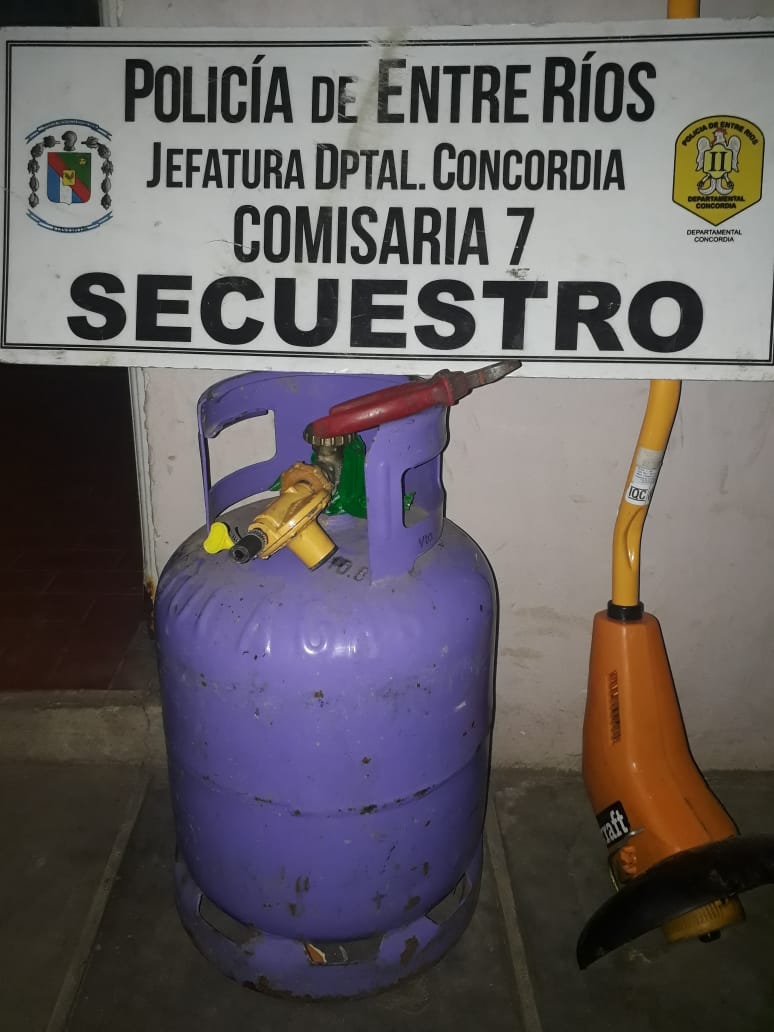 Siendo las 03:00 horas, personal de comisaria séptima realizaba patrulla por la jurisdicción cuando observan en calle 58 y Dr. Sauré a un masculino con una garrafa al hombro y una cortadora de pasto, al