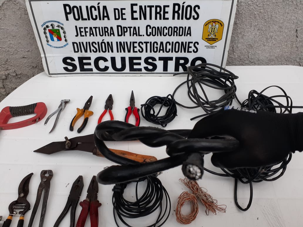 Personal de la división Investigaciones realizó operativo en el marco investigativo de causas iniciadas por denuncias de una empresa telefónica, en fecha 15 y 18 de abril del corriente año. Personal de dicha empresa, había constatado la faltante de cables de líneas telefónicas, en zona del puente Alvear y de Bvard. Yuquerí .En tal sentido, en la víspera, personal de Investigaciones diligenció dos órdenes de allanamientos emanadas del Juzgado de Garantías local Nro. 01, con resultado positivo: En una vivienda de Avda. Pte. Illia, se notificó a un hombre de 52 años, y se procedió al formal secuestro de herramientas de cortes de cables, de varios modelos y tamaños, Un trozo de cable de envainado de filamentos de acero y fragmentos de cables de varios tamaños, todos pertenecientes a instalaciones telefónicas. Por otra parte, en una vivienda sita en calles Gregoria Pérez y 2 de Abril, se procedió al secuestro de herramientas de cortes de diversos modelos y tamaños, notificándose a una mujer de 53 años.