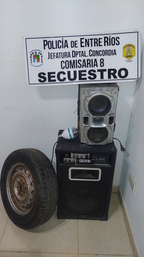 En la fecha siendo las 00.10 hs, aprox., personal de comisaría Octava de recorrida por Odiard y San Lorenzo, observan a un masculino con dos parlantes y una rueda de auxilio, quien al ver la presencia Policial intentó darse a la fuga arrojando los elementos, a los pocos metros es aprehendido.- El damnificado indicó que le sustrajeron de su auto Vw Gol los elementos mencionados previo romper la luneta trasera. La fiscal ordenó la Aprehensión del masculino de 26 años y el secuestro de los elementos.-
