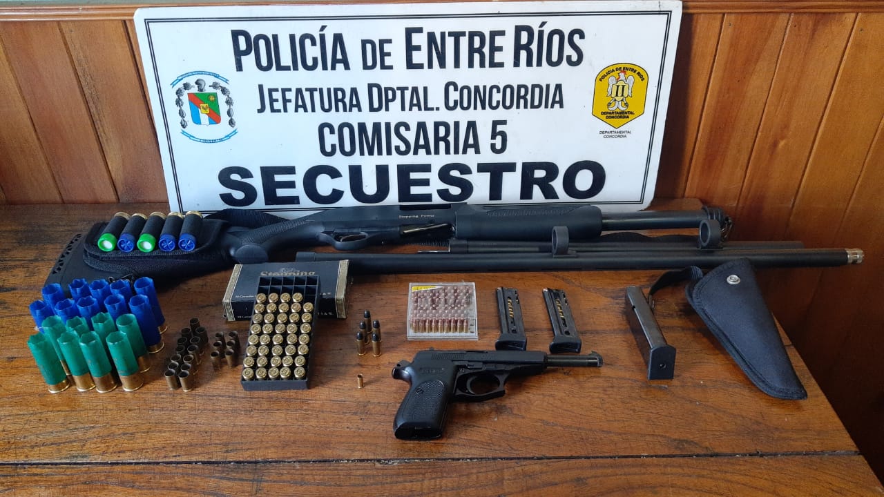 En la fecha personal policial, dio cumplimiento a Mandamiento emanado del Juzgado de Garantías, en relación a una causa iniciada por denuncia de una ciudadana en sede judicial. Se allanó una finca sita en jurisdicción de comisaria quinta, arrojando el procedimiento resultado POSITIVO, procediéndose al secuestro de (01) escopeta marca STOPPING POWER, calibre 12/70, dos caños desmontables, en su respectivo estuche, cinco cartuchos del mismo calibre marca RIO AMMO (03) y FM AT (02), (01) pistola calibre 22, marca BERSA, con dos cargadores conteniendo ambos diez cartuchos, 01 caja conteniendo 93 cartuchos mismo calibre, .39 cartuchos calibre .40, 18 cartuchos percutados calibre 12/70, 13 cartuchos percutados calibre .40 y 01 cartucho percutado calibre .22 y 01 cargador vacío de calibre .40.-