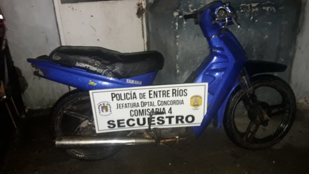 rodado.- Los funcionarios se abocaron a la tarea de búsqueda y logran seguir las huellas de la moto por el barro, logrando localizarla en el fondo de una casa donde no había moradores, sita en calle Nogoyá y La Paz, escondida entre las malezas.- Se labran las diligencias de rigor en el lugar, secuestrándose la moto marca Yamaha Crypton 119,