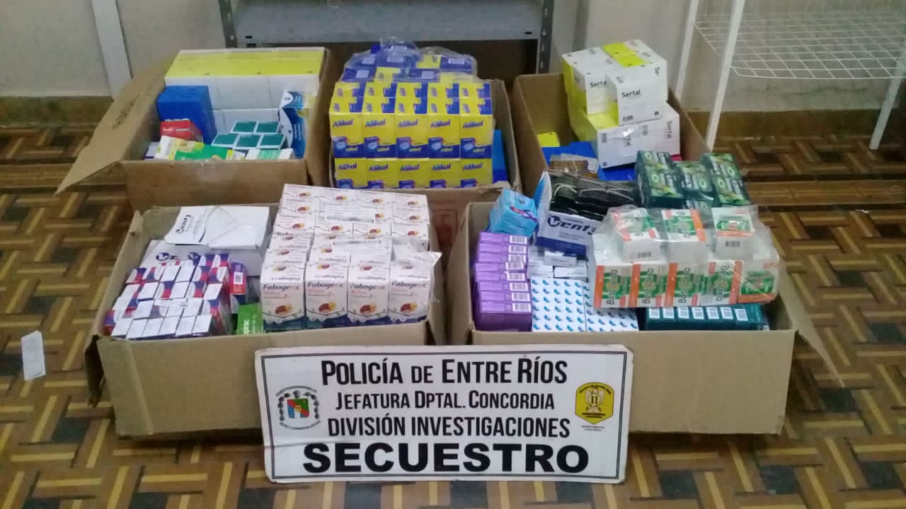 El procedimiento se efectuó tras varios días de tareas de vigilancia, en una vivienda ubicada en calle Feliciano al 1000, donde se notificó a una ciudadana de 59 años de edad, y se procedió al secuestro de gran cantidad de medicamentos (varios), mercadería valuada en aproximadamente $ 500.000. Asimismo se secuestraron tres teléfonos celulares, una Tablet, una PC, una caja registradora, y documentación relacionada al hecho investigado. Por disposición del fiscal de turno, las tres personas que se encontraban en el lugar, todos mayores de edad, fueron trasladadas a dependencias de la Jefatura Departamental para una correcta identificación. Personal de la división Investigaciones, con colaboración de personal de comisaría Segunda, en la víspera, realizaron allanamiento dando cumplimiento a Mandamiento emanado del Juzgado de Garantías N° 1, en relación con actuaciones iniciadas en comisaría Segunda, por presunta comercialización ilegal de medicamentos.