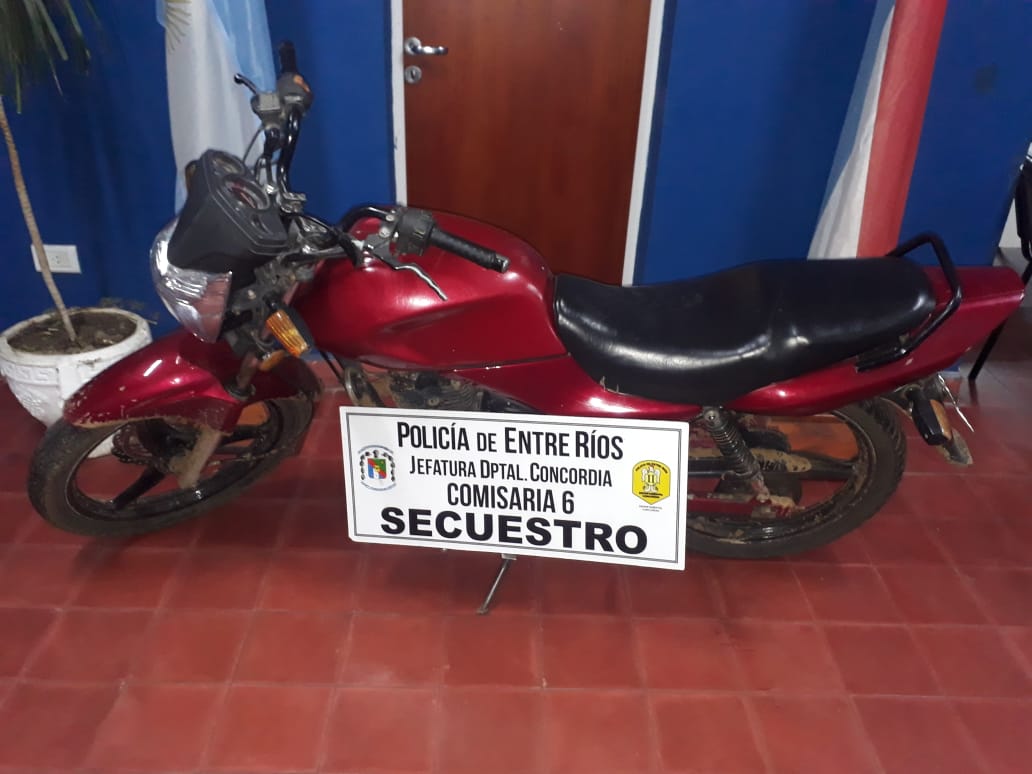 Personal Policial de Comisaria Sexta, en horas de esta tarde, en los Operativos montados ordenados por el comando superior de la Jefatura Dptal. Concordia, pudo secuestrar una moto que pesaba un pedido desde el año 2014, siendo la misma de marca GILERA VC 150, de color roja la que era conducida por un ciudadano de 28 años, se realizaron las diligencias de rigor con el conocimiento del Fiscal en turno.