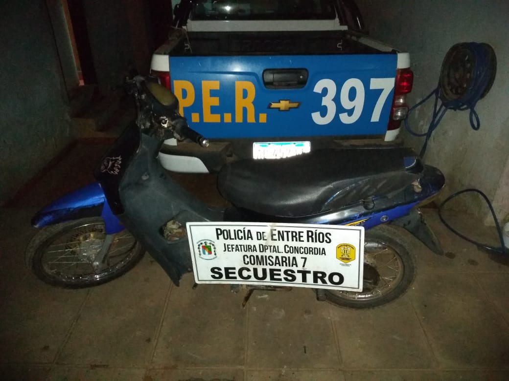 A las 00:15 horas, personal de comisaria Séptima, en calles Piérola y German Abdala, intercepto una moto Gilera Smash, que al ser controlada registró pedido de secuestro. La denuncia de por supuesto