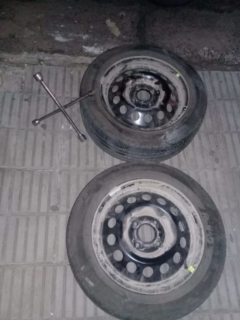dos ruedas completas de similares características a las denunciadas. El fiscal ordenó el secuestro de las ruedas, identificación del masculino y retención del vehículo por encontrarse en infracción a la