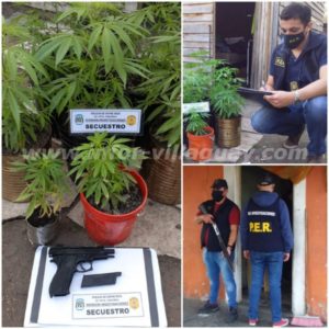 Una vez iniciado los procedimientos por parte del Personal Policial de la División de Investigaciones de la Jefatura Departamental Concordia se pudo secuestrar: varias prendas de vestir relacionadas con el hecho , (01) imitación de arma de fuego calibre 9mm de material plástico color negro con cargador extraíble, (08) plantas de cannabis sativa (marihuana) interviniendo la División de Toxicología y como fue mencionado anteriormente en la Localidad de Estancia Grande se pudo secuestrar: (01) moto marca GILERA-SMASH de color azul, sin dominio colocado (moto interesada en el robo calificado) y otra moto marca GUERRERO-TRIP de color azul la que tendría un pedido de Secuestro desde el año 2018 por una Denuncia radicada en Comisaria Tercera.