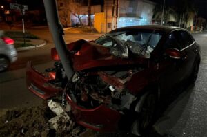 La policía informó que una conductora de 33 años, residente en la capital provincial, en un automóvil Ford Focus en Concordia, chocó violentamente contra un poste en la intersección de calles San Lorenzo y Nogoyá. A raíz del violento impacto, la parte frontal del auto quedó destrozada, pero no se registraron heridas de gravedad en la ocupante.