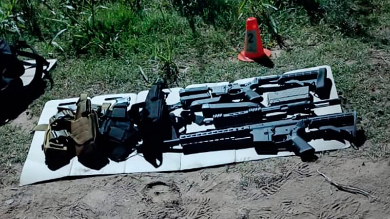 En el interior de la camioneta Toyota SW4, de color negra y vidrios polarizado encontraron dos armas de puño que se suman al resto de los objetos que estaban junto al rodado: un buzo camuflado, tres armas de fuego de hombro tipo carabina, 19 cartuchos calibre 762, una mochila marca Nike de color negra, cuatro musleras, 28 cartuchos de calibre 9 milímetros, 26 cartuchos calibre 5,56mm con un cargador, 30 cartuchos calibre 7,62×39 con su cargador, un bolso negro, un chaleco de balística color blanco, una masa con mango de madera y una remera de color azul marca Swat.