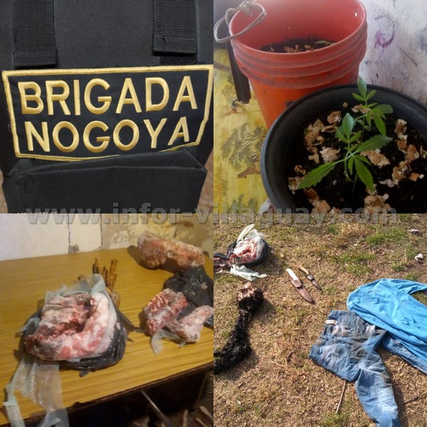 El dia lunes y viernes respectivamente se dio cumplimiento a oficios del Juzgado de Transicion y Garantias Nogoya, procediendo a Allanamiento y Registro de dos inmuebles en la localidad de Lucas Gonzalez el dia lunes, y de un inmueble en la ciudad de Nogoya el dia viernes, logrando dar con elementos relacionaados a los ilicitos de ABIGEATO, por cuanto se procedio al secuestro de PIEL DEL ANIMAL BOVINO, Y PORCINO RESPECTIVAMENTE- PRENDAS CON MANCHAS DE SANGRE, CUCHILLOS, Y EN LA LOCALIDAD DE LUCAS GONZALEZ PLANTAS DE CANNABIS SATIVA.