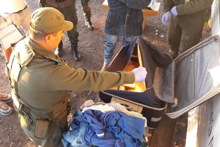 De un primer control efectuado a mencionado vehículo, se observó exaltación inusitada del can antinarcóticos frente a una valija por lo que con la correspondiente orden judicial y ante la presencia de testigos hábiles, se procedió a la apertura de la misma pudiendo comprobar que en su interior llevaba 23 paquetes de distintas dimensiones, ocultos en un doble fondo. La sustancia vegetal hallada fue sometida a pruebas de campos que arrojaron resultado positivo para marihuana.