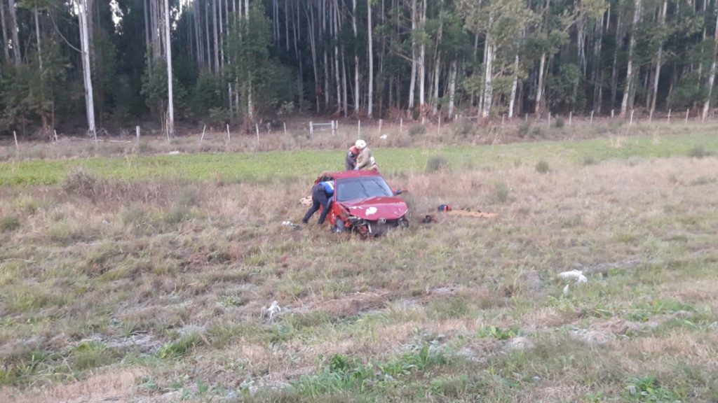 Según se supo, un auto, marca Peugeot 306 de color bordó, que circulaba en sentido este-este, despistó violentamente y volcó sobre la banquina sur.