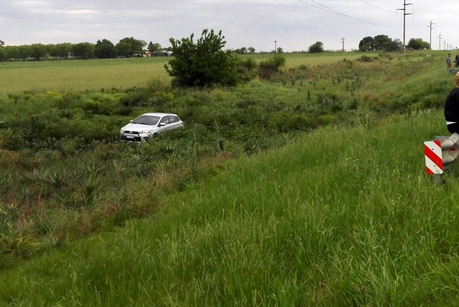 Como producto del despiste, se cruzó a la banquina Sur, finalizando en la parte inferior de la misma, donde existe un arroyo y que afortunadamente no hubo consecuencias físicas en la conductora pese a que el rodado debió ser retirado con un tractor.