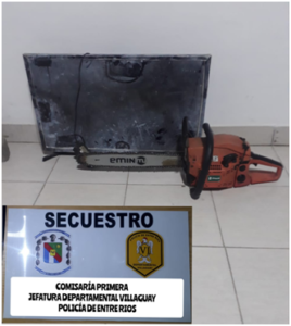 Comunicado de lo sucedido a la Fiscalía local en turno, se procedió al formal secuestro del elemento denunciado como sustraído como así también de la motosierra; asimismo el ciudadano reducido de 32 años de edad, fue trasladado hacia Jefatura Departamental Villaguay en calidad de detenido por el supuesto delito de “Robo en flagrancia; atentado y resistencia a la autoridad”.