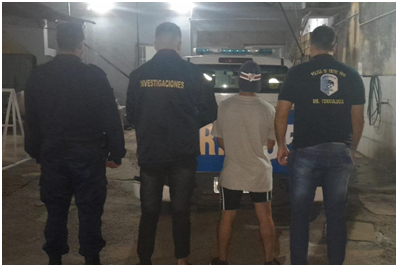 En horas de la tarde de este pasado sábado 03 de junio, personal de la División Investigaciones, quienes se encontraban de recorrida prevencional en la zona sur de la ciudad, detienen la marcha de un masculino el cual se transportaba en bicicleta quien al percatarse de la presencia policial emprende a la fuga, siendo rápidamente alcanzado y demorado.