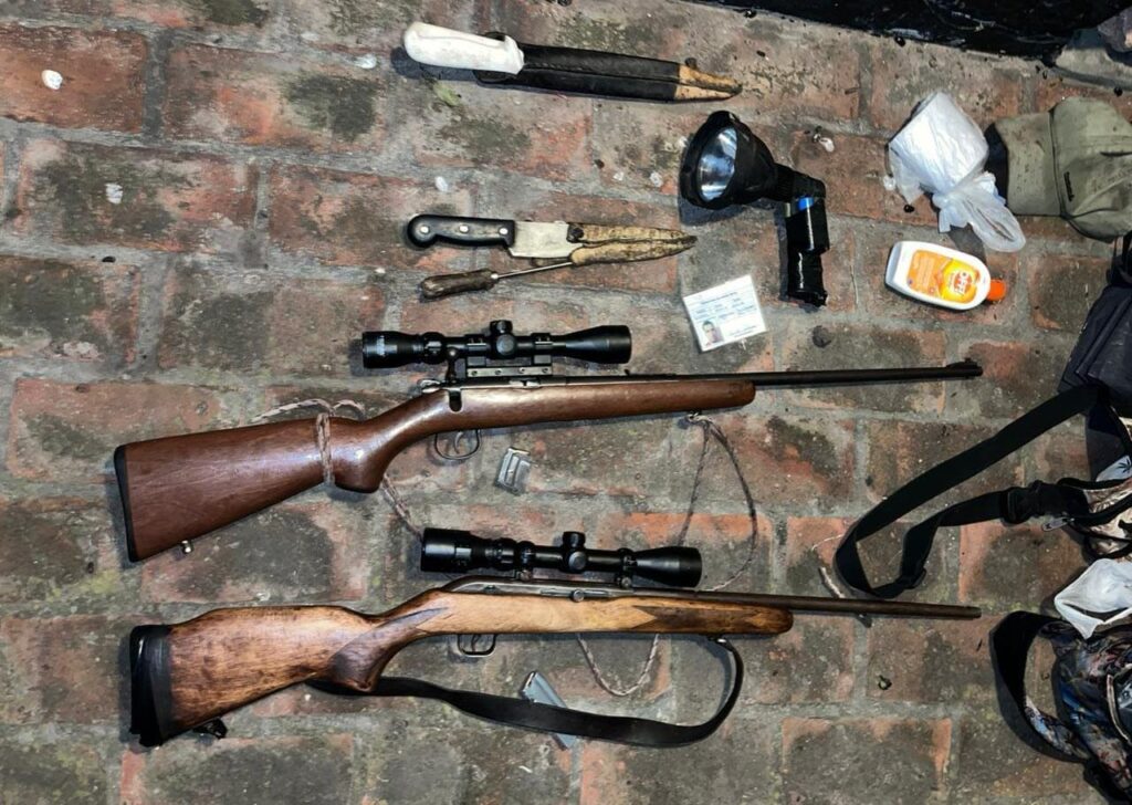 Este Viernes por la madrugada, personal de la Brigada de Prevención Delitos Rurales Gualeguaychú tomo intervención nuevamente en Estancia «Reserva El Potrero» dónde guarda faunas habían demorado en el interior de la Reserva a dos ciudadanos de nacionalidad Uruguaya, quienes ingresaron al País de forma ilegal, con el fin de realizar la actividad de caza, con los agravantes de realizar la misma en una Reserva Natural, sumado a ingresar al país de forma totalmente ilegal, y portando dos armas de fuego largas, ambas calibres .22, sin ningún tipo de documentación legal exigida por Ley. Estás personas fueron puestas a disposición de la fiscalía en turno, por el delito de Tenencia Ilegal de Arma de Fuego, y posteriormente entregados a Migraciones para su deportación.