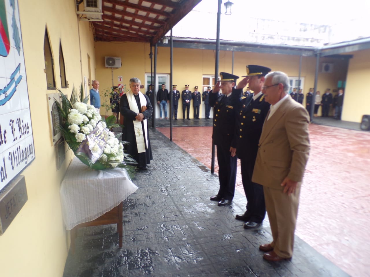 Se contó con la presencia del padre Rafael Micheloud Presbítero de la Parroquia Santa Rosa de Lima quien realizó una invocación religiosa en memoria de estos funcionarios fallecidos, y de todos los policías entrerrianos que perdieron su vida en cumplimiento del deber.-