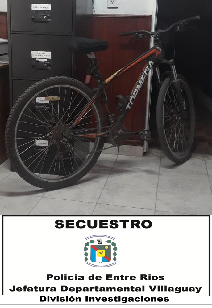 En la tarde de este domingo 18 de septiembre, personal policial de la División Investigaciones halló una bicicleta Mountain Bike rodado 29 marca Top Mega en inmediaciones del Skate Park.
