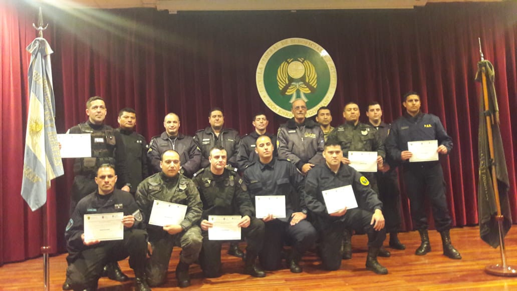 Los dos funcionarios policiales pertenecientes a la Jefatura Departamental Gualeguaychú que fueron designados, Oficial Inspector Dotto Exequiel y el Cabo Venencio Brian Oscar, pertenecientes al Grupo Especial y a la Sección Motorizada, compartieron la capacitacion en Capital Federa junto 10 policias de las provincias de Chaco, Chubut, Tucumán; también personal del Grupo Halcón y del Ejército Argentino.