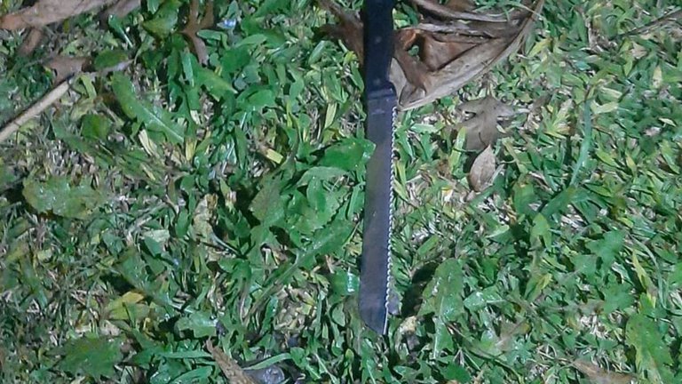 Al oír esto, Chano toma el cuchillo y lo alza sobre su cabeza, increpando a la mujer.