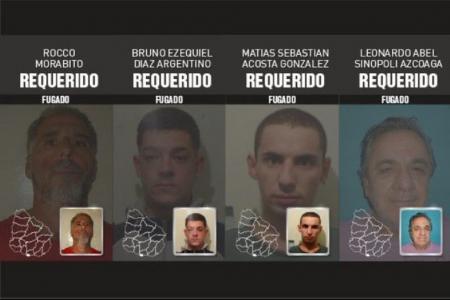 Además de Morabito, se fugaron Leonardo Abel Sinopoli Azcoaga, detenido por falsificación de documento y hurto y pedido en extradición por Brasil; Matías Sebastián Acosta González, también requerido por la justicia brasileña, y Bruno Ezequiel Díaz, detenido por un homicidio a solicitud de la justicia de Argentina, indicaron las autoridades uruguayas.