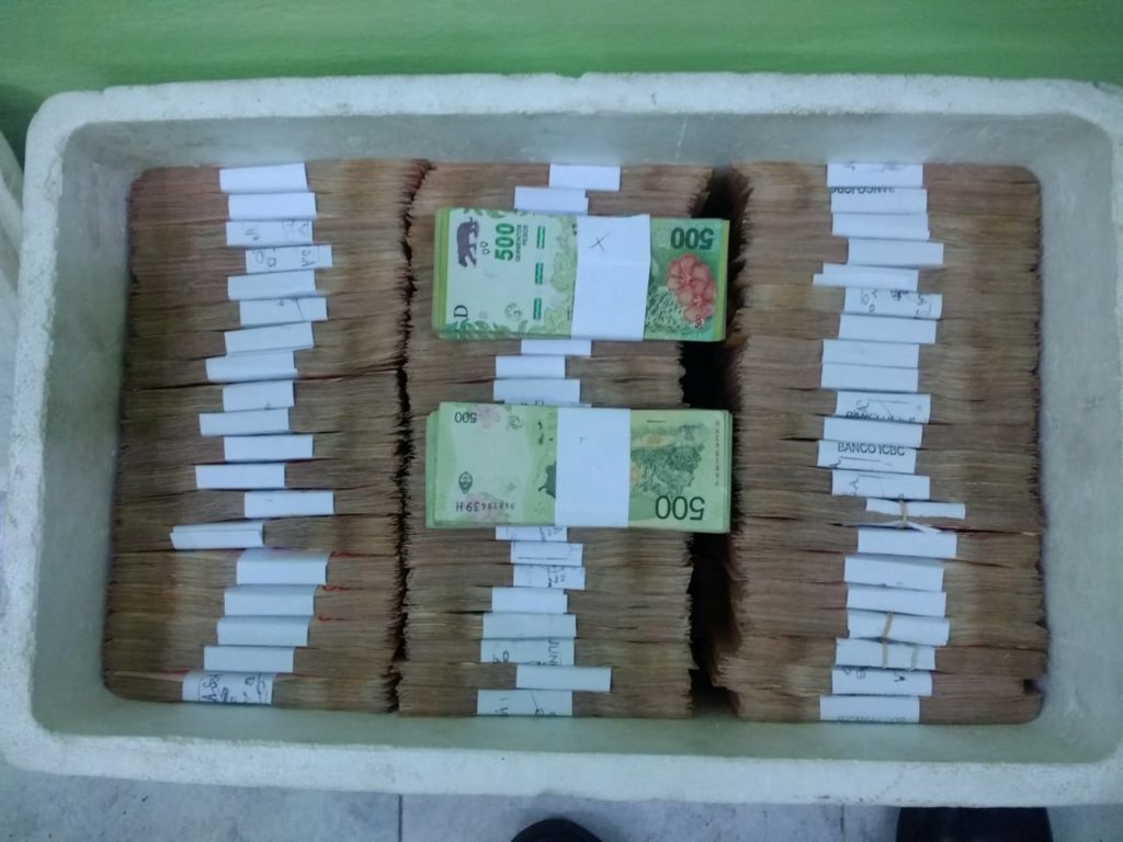 na circunstancia que fuera detectada en el Puesto Caminero Paso Cerrito, departamento Federación, dependiente de la Dirección de Prevención y Seguridad Vial, en el marco del conjunto de operativos de prevención publica, identificación y control de vehículos y personas, los mismos destinados a garantizar seguridad en este Feriado Largo que se aproxima en virtud de las fechas religiosas de Semana Santa, dejó a los policías asombrados en lo que podría decirse es al mayor secuestro de divisas llevado adelante por esta Dirección de la Policía de la provincia de Entre Ríos. Tal es así, que pasadas las 18:00 del día de ayer, cuando en el puesto caminero citado, el mismo situado en Autovía General Gervasio Artigas a la altura del kilómetro 341, se detuvo la marcha de una pick up marca Toyota, modelo Hilux SW4, en la cual se conducían dos hombres mayores de edad oriundos de la provincia de Buenos Aires y la cual ingresaba desde Corrientes a la provincia de Entre Ríos. Que una vez realizado el control primario de la unidad y tras detectarse que el conductor venia circulando en estado de intoxicación alcohólica se profundiza el control de la unidad hallándose en el baúl del rodado abultadas cajas bajo las cuales se hallaban dos mas, las mismas de tolgopor o conservadoras de frió. Ante esto el personal destacado en el control indagó al conductor sobre el contenido de las mismas evadiendo la pregunta el responsable del rodado, esgrimiendo respuestas descolocadas y sin sentido. Ahora bien accediendo a la postre al control de las mismas en el interior de se evidencio una cantidad abultada de dinero en efectivo. Ante esto, y considerándose estar ante la presencia de una conducta reñida o lesiva al ordenamiento jurídico en vigencia se dio inmediata comunicación a la Secretaria Penal del Juzgado Federal de la ciudad de Concepción del Uruguay, con competencia territorial, Autoridad judicial esta que autorizó la requisa de urgencia del rodado, diligencias estas que se llevan adelante, dándose intervención a la División Toxicología de la Jefatura de Policía Departamental Federación. Que producto de las diligencias llevadas a cabo se hallan dos cajas de telgopor y en el interior de las cuales se había ocultado dinero y tras realizar las diligencias de estilo y el conteo de del mismo, pesos argentinos, arrojo la astronómica cifra de veintiocho millones seiscientos mil pesos argentinos discriminados en billetes de mil y de quinientos ($28.600.000) dinero este del cual el conductor y su acompañante no pudieron justificar origen licito del mismo, careciendo de todo tipo de documentación respaldatoria. Por esto se procedió al formal secuestro del dinero citado, quedando los ocupantes de la pick up encartados por el supuesto delito de Lavado de Activos y supeditados a la causa federal de referencia.-
