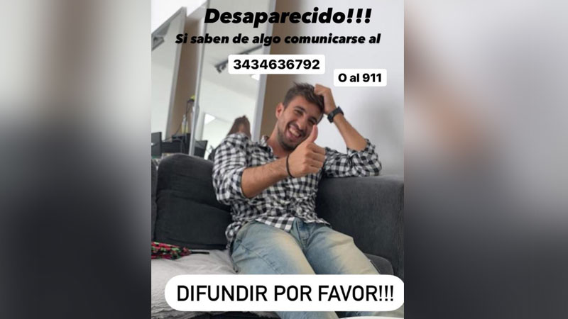 “Hemos perdido el rastro y no lo encontramos. La última comunicación que fue con su novia ayer a las cuatro, cinco de la tarde 16. A la noche iba a ir al gimnasio con un amigo y no apareció; después lo estaban esperando los amigos para ver el partido pero no aparecía y empezaron a llamarlo al celular y no contestaba, directamente daba apagado”, expresó.Ante esta situación, “empezamos a preguntarnos entre todos si habíamos tenido contacto, pero nadie lo había visto y empezamos a buscar por todos lados”.