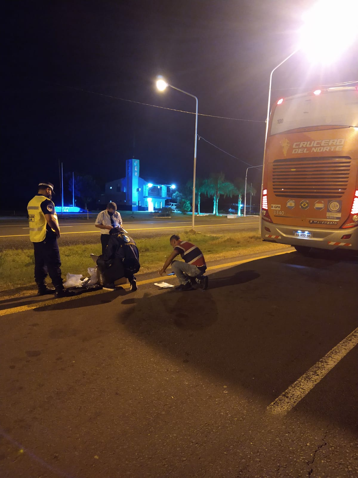 En las primeras horas del dia de hoy, personal policial perteneciente a la Direccion de Prevención y Seguridad Vial destacados en el puesto Caminero Paso Cerrito, cuando se hallaban efectuando ininterrumpida labor de prevencion publica, control de personas y vehiculos, detuvo la marcha de un ombibus que provenia de la ciudad de Posadas, provincia de Misiones. Al efectuar un pormenorizado control de la baulera del transporte de pasajeros con el can narcodetector Jana y su guia natural, el mismo adoptó conductas típicas y características ante la presencia de estupefacientes sobre una encomienda cuyo destino era la ciudad de Gualeguaychu. Ante esto, y previo anoticiamiento de lo acaecido a la justicia de excepcion, se dio intervencion a la Division toxicologia de la jefatura de Policia departamental Federación, personal este que hallo la cantidad de 3,226 kg de una sustancia compactada, vegetal que al reactivo de campo arrojo positivo como cannabis sativa. Dicha sustancia fue secuestrada y puesta a disposición de la justicia por infraccion a la Ley 23.737, prosiguiéndose con las labores investigativas.
