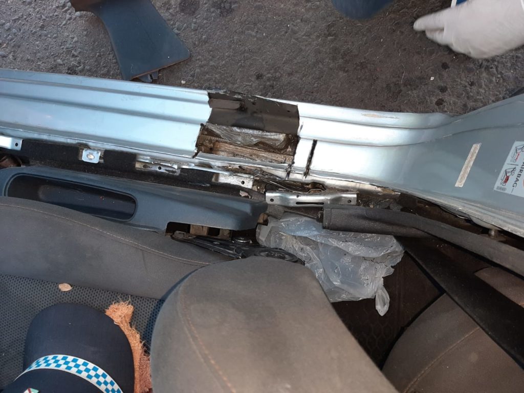 Y DE ACUERDO A LOS LINEAMIENTOS Y DIRECTIVAS IMPARTIDAS DESDE EL MINISTERIO DE GOBIERNO DE LA PROVINCIA, EL COMANDO SUPERIOR DE LA POLICIA DE ENTRE RIOS A CARGO DEL CRIO. GRAL GUSTAVO MASLEIN, LA DIRECCION DE PREVENCION Y SEGURIDAD VIAL, VIENE DESARROLLANDO DISTINTOS OPERATIVOS DE PREVENCION PUBLICA, INTEGRALES, OPTIMIzANDO TODOS LOS RECURSOS DISPONIBLES, DESARROLLANDOSE DISTINTAS EXTRATEGIA PARA LOGRAR VULNERAR Y DETENER EL TRAFICO DE DISTINTAS SUSTANCIAS PROHIBIDAS, EN ESTE CASO EN EL PUESTO CAMINERO PASO CERRITO . siendo alrededor de las 02:10 horas, en circunstancias que el personal se encontraba realizando control vehicular frente a este puesto situado en autovía Artigas-km 341, carril con sentido de circulación de norte a sur, se procede a hacer detener la marcha de un vehículo que ingresaba a esta provincia de Entre Ríos siendo este marca Volkswagen modelo Fox 1.6, sedán 3 puertas, de color gris plomo, el cual era conducido por su único ocupante siendo el titular registral del rodado Gomez W., argentino, soltero, de 41 años de edad, domiciliado en la Ciudad Autónoma de Buenos Aires,, quien ante la requisitoria exhibe la documentación para circular en óptimas condiciones. Continuando con el contralor, se le solicita la apertura voluntaria del baúl acción que este intenta realizar una vez que desciende del rodado demostrando predisposición para ello, expresando luego que tiempo antes se le había trabado la cerradura en cuestión. Seguidamente, con el can antinarcóticos «Jana» se le realiza una exhaustiva inspección obteniendo como resultado un cambio en su actitud demostrando la posible presencia de material estupefaciente en ambos zócalos de las puertas. Se destaca que en forma posterior se observa por un pequeño orificio de la puerta izquierda una sustancia vegetal de color verde amarronado tratándose posiblemente de marihuana. Ante ello y con los recaudos del caso se le da interevencion al personal de la Direccion Toxicologia loss que se comunican con el juzgado federal de Concepcion del Uruguay, autorizandose la requiza del vehiculo en cuestión, utilizando para ello herramientas de corte y amoladora, procediendo a extraer del interior del mismo más precisamente de los zócalos de ambas puertas, una cantidad total de 59 paquetes en forma rectangular tipo ladrillos de diferentes tamaños, presentados cada uno de ellos en el interior de bolsas de nylon transparente, impregnadas con una sustancia tipo grasa o similar, atadas cada una de ellas en sus puntas con piolas, conteniendo en su interior una sustancia amarronada, compacta con olor fuerte, la cual a su prueba orientativa de campo arroja resultado positivo para marihuana, haciendo un pesaje total de 22 kilogramos. En tanto el masculino queda detenido e incomunicado en Comisaria Chajari a disposición del Juzgado Federal de Concepción del Uruguay a cargo del Dr. Sero Pablo.
